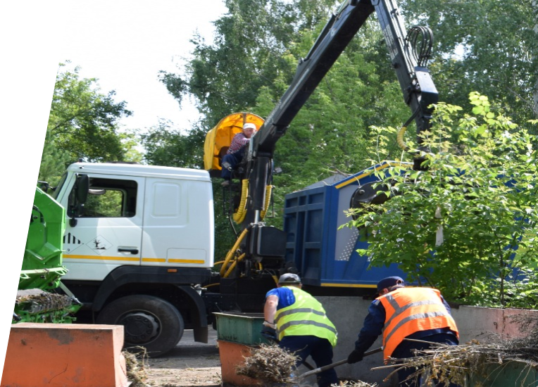 Универсальные контейнерные мусоровозы, оборудованные металлической платформой с подъёмно-опрокидывающим оборудованием и съёмным цельнометаллическим контейнером, позволяющие выполнять сбор и вывоз крупногабаритных отходов, строительных и промышленных отходов, накапливаемых в сменных контейнерах большой вместимости.